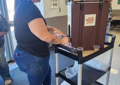 The cafeteria staff served cheese filled breadsticks today, aka Bosco’s! The kids also had the choice of broccoli, raisins or applesauce and a milk choice (of course). To add to all of that deliciousness…today is “National Chocolate Milkshake Day”. Everybody in the district got a chocolate milkshake served by our brand new Food Service Director, Kolby Tator!